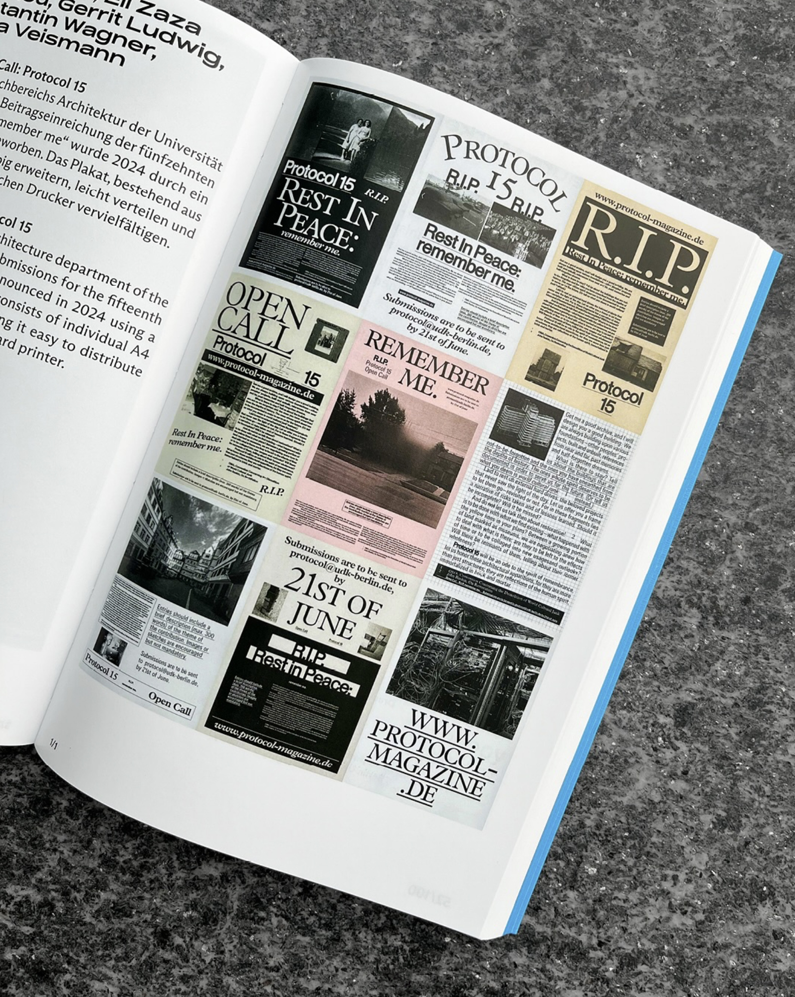 R.I.P. – REMEMBER ME ✴︎ Get me a good archive, and I will design you a good building. We are always building upon various foundations–other peoples’ projects, built and unbuilt, references from near and far, past memories and half-forgotten dreams. What is there to stay? Tell us about the buildings that are not-to-be-forgotten and the ones you have unearthed from the depths of history. The ones whose spirit deserves to be documented in order to serve us for the future. (Or tell us what you deem is world cultural junk instead.¹) Laid to rest on external hard drives: the beloved projects that never saw the light of the day. Let us offer you a frame to let them go–revisited or not. For in these fragments lies a narrative of risks taken and of lessons learned. Should it be incomplete? Will it be missed? And do not let us talk then about restoration!² What is to be done with what we find existing–what happened with the yellow lines in your plans? Between a growing portion of land marked as museums, we are negotiating anew how to deal with what is there: are they to be left to the effects of time or to be collaged into new usages and outlooks? Will there be remnants of them, telling about their former wholeness? Protocol 15 will be an ode to the spirit of remembrance, let us honor these architectural apparitions, for they are more than just structures; they are reflections of the human spirit, immortalized in brick and mortar.